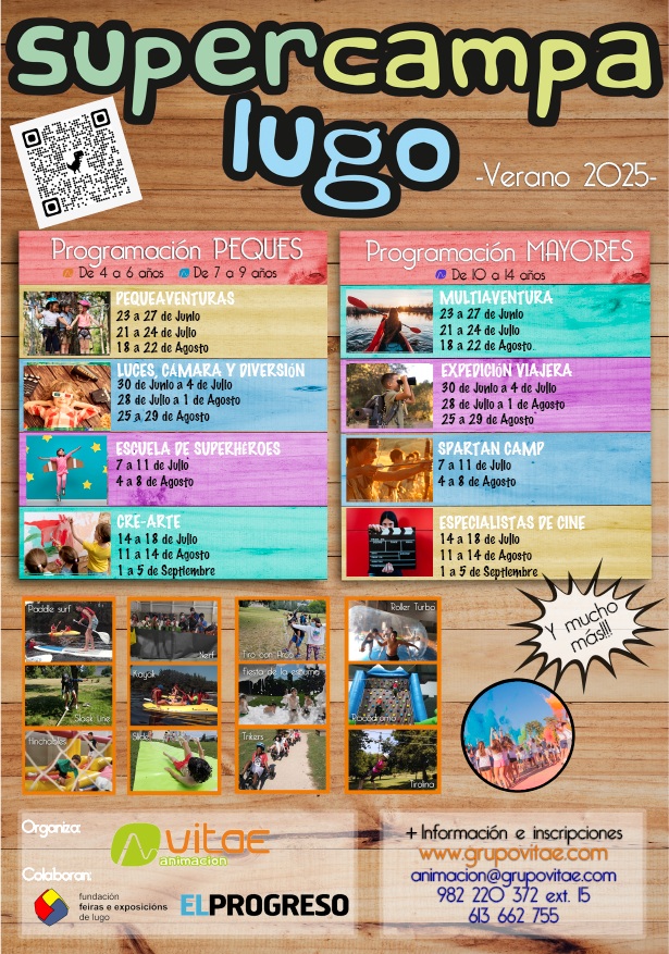 “ Aprovéchate de nuestra experiencia desde el 2001, en campamentos urbanos y de la Xunta de Galicia (Area, Chacotes, Furelos, Marina Española, Portomarín…).” - Grupo Vitae -